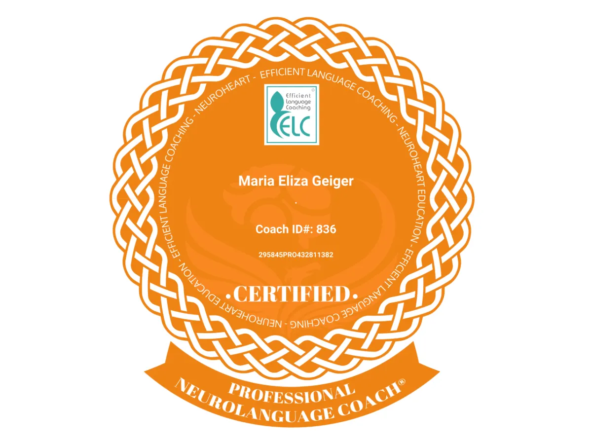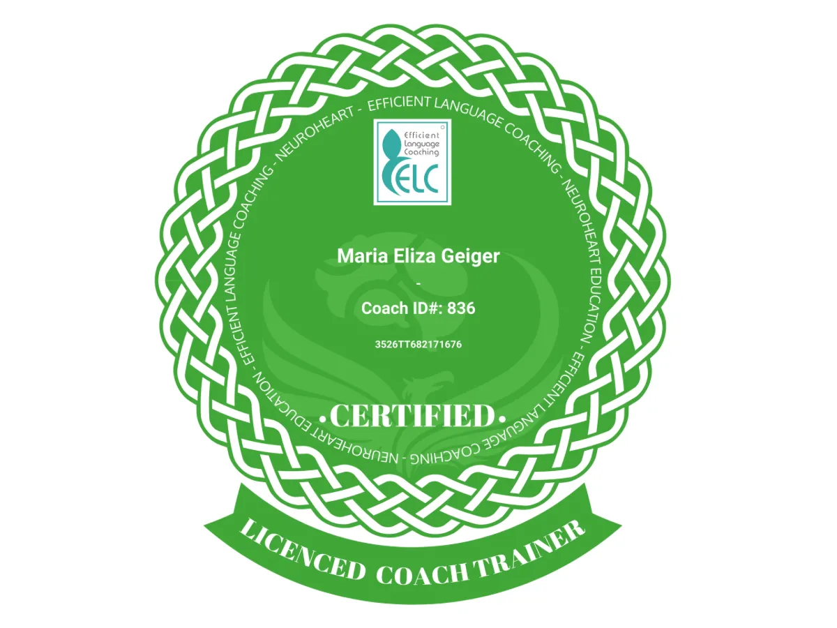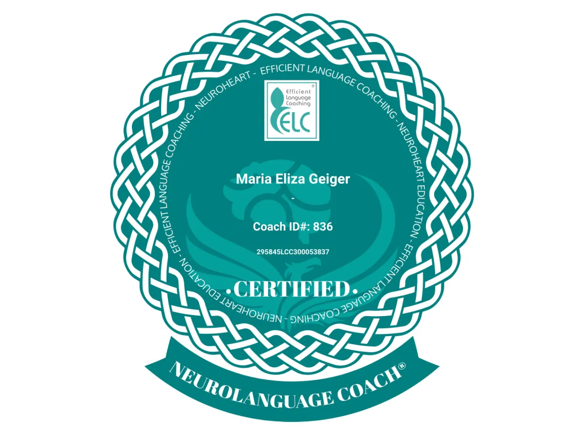 Der Professional Neurolanguage Coach hat mit Rachel Paling trainiert, um ein lizenzierter Trainer des ELC Language Coaching Certification Course zu werden, mit insgesamt 112 Neurolanguage Coaching-Trainingsstunden.